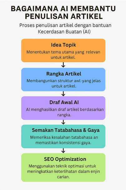 Berikut ialah rajah ringkas bagaimana AI menyokong proses penulisan artikel: